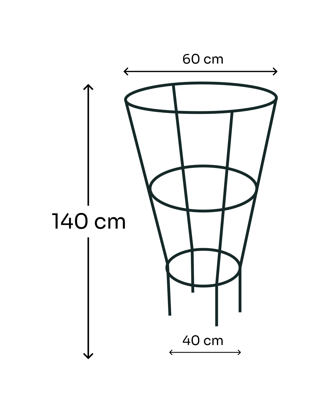 El Tutor Cono está diseñado para contener el volumen de plantas con porte medio a alto, brindando estructura y forma sin limitar el crecimiento natural. Su figura cónica permite que las ramas se apoyen de forma ordenada, evitando caídas o aplastamientos por viento o lluvia.