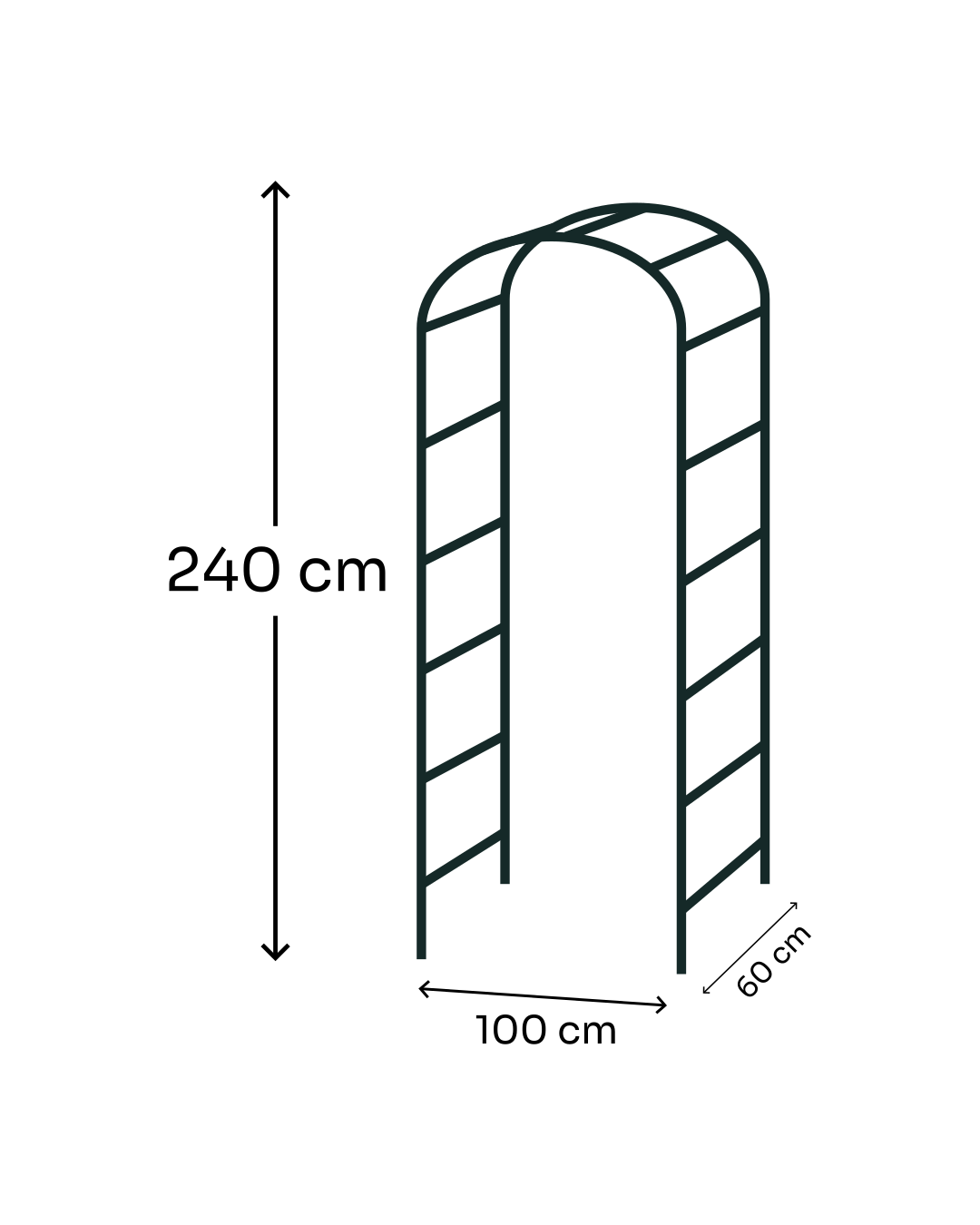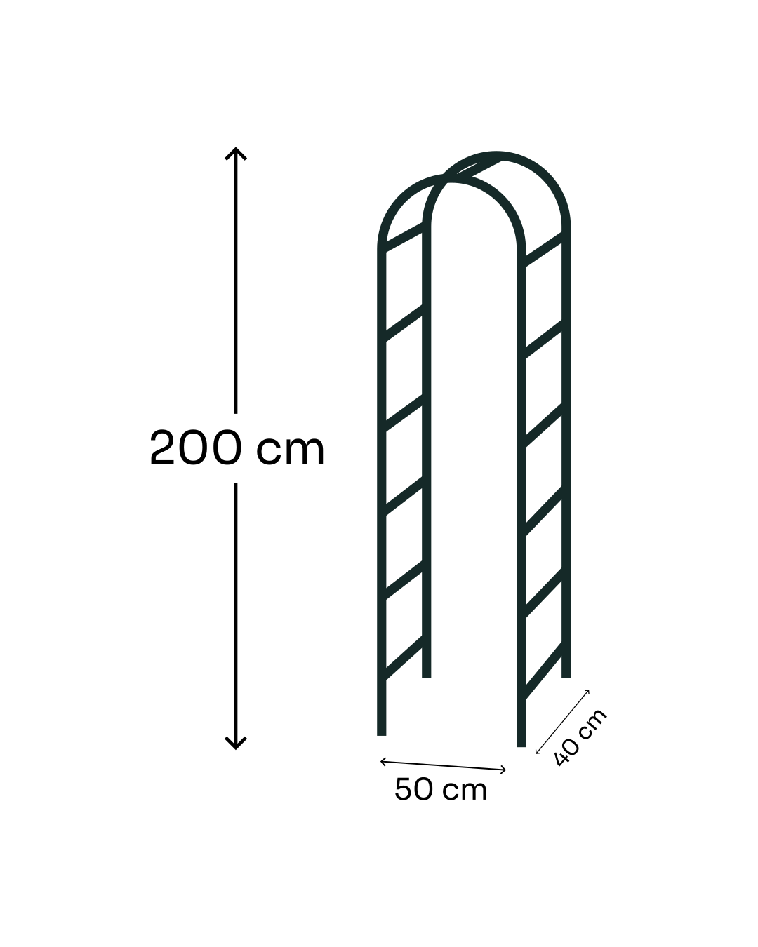 Este tutor en forma de arco es ideal para acompañar el crecimiento de trepadoras, generando un paso cubierto de vegetación o una pérgola natural. Aporta estructura y belleza a cualquier espacio, funcionando como un elemento decorativo y funcional en jardines, huertas o entradas.
