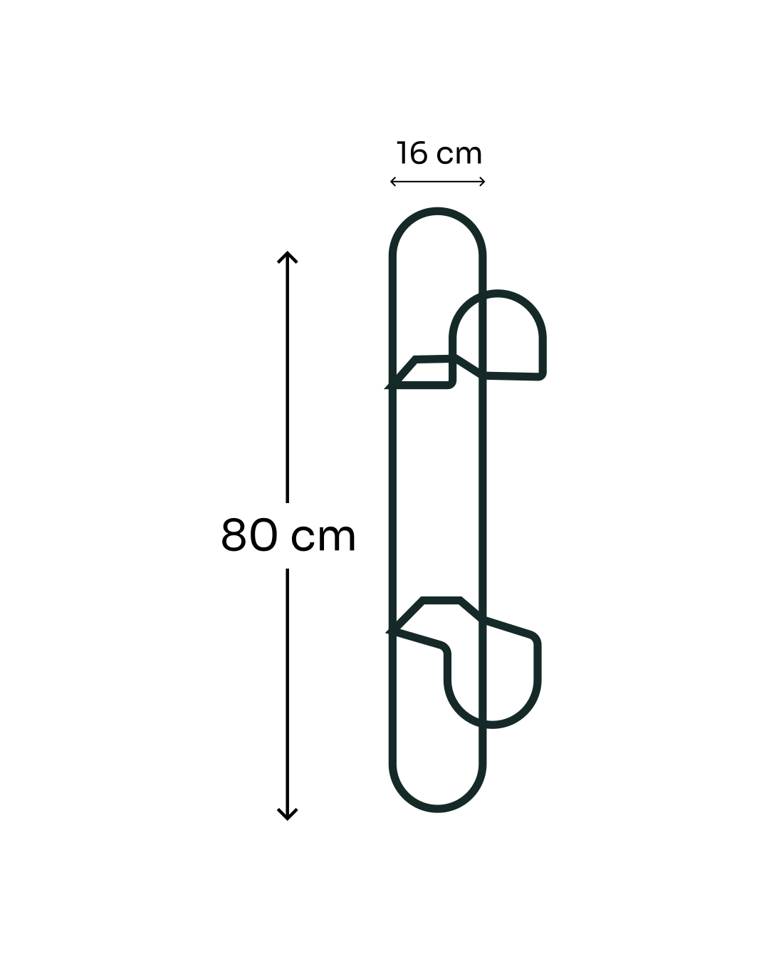 Para colgar en pared: 80 cm de alto x 16 cm de ancho x 19 cm de profundidad
