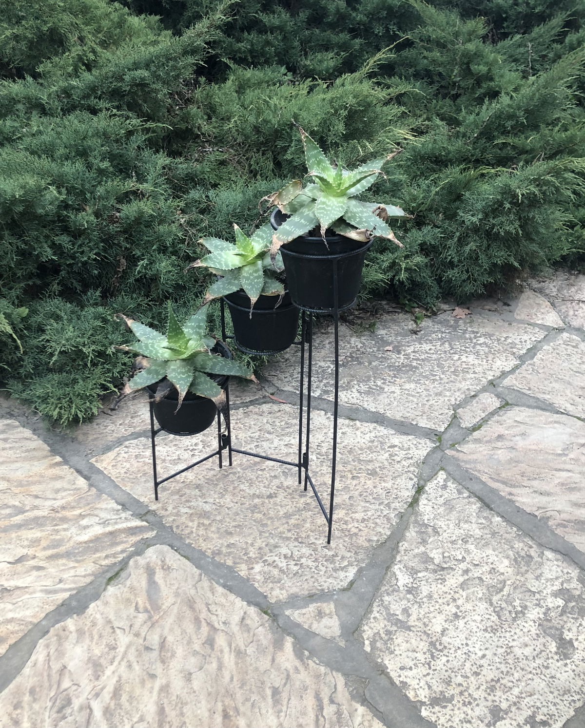 El Macetero Triple combina practicidad y estilo, permitiendo exhibir tres macetas a diferentes alturas para dar dinamismo y volumen a tu espacio verde. Fabricado con el mismo hierro macizo de alta resistencia que utilizamos en nuestros tutores, es una pieza sólida y duradera, ideal para uso interior o exterior.