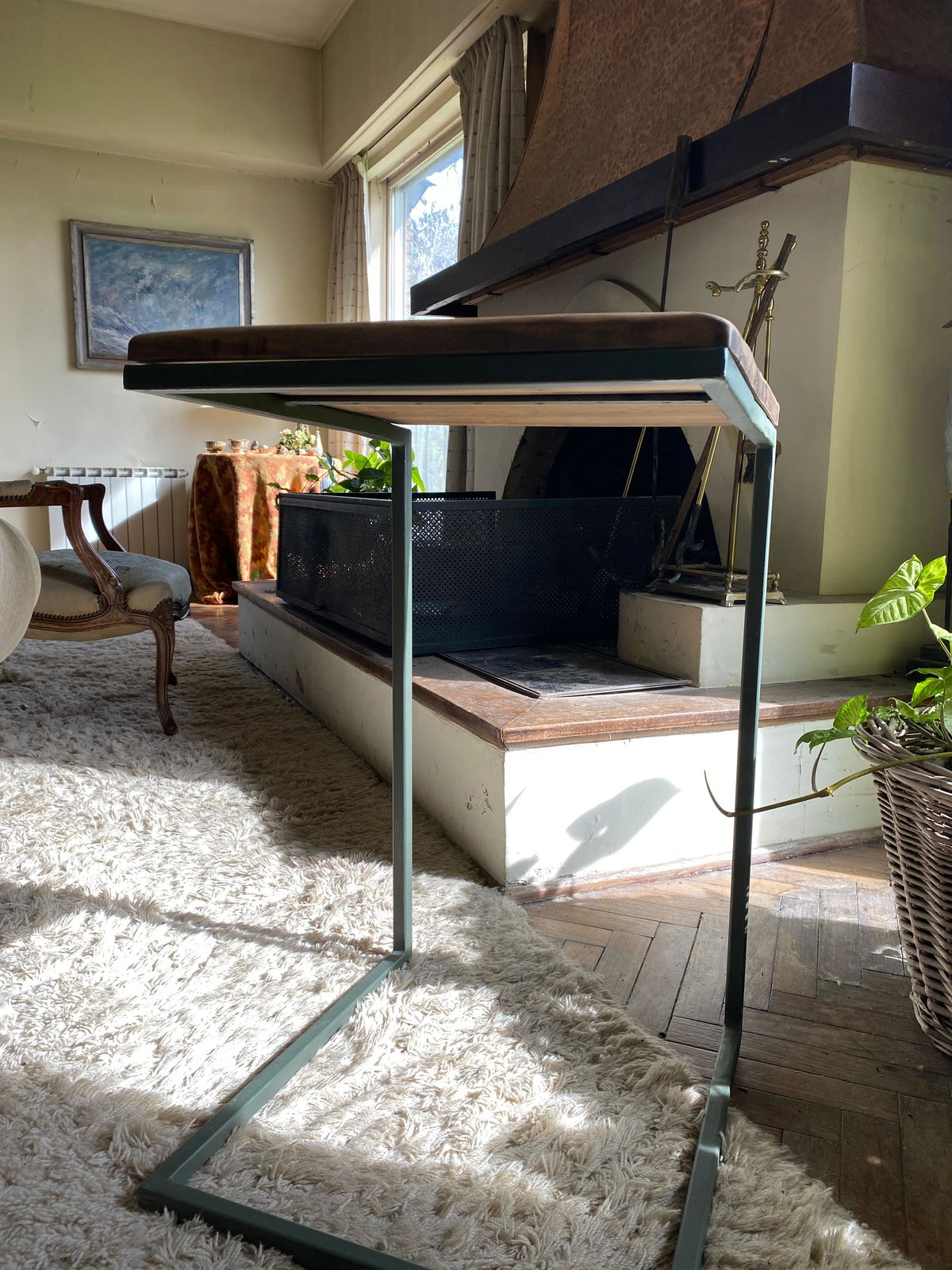 Su estructura robusta en hierro pintado en negro mate o verde mate aporta un aire industrial y moderno, mientras que la tapa de madera ofrece un toque natural y acogedor. Gracias a su base cuadrada, brinda excelente estabilidad y un diseño equilibrado.
